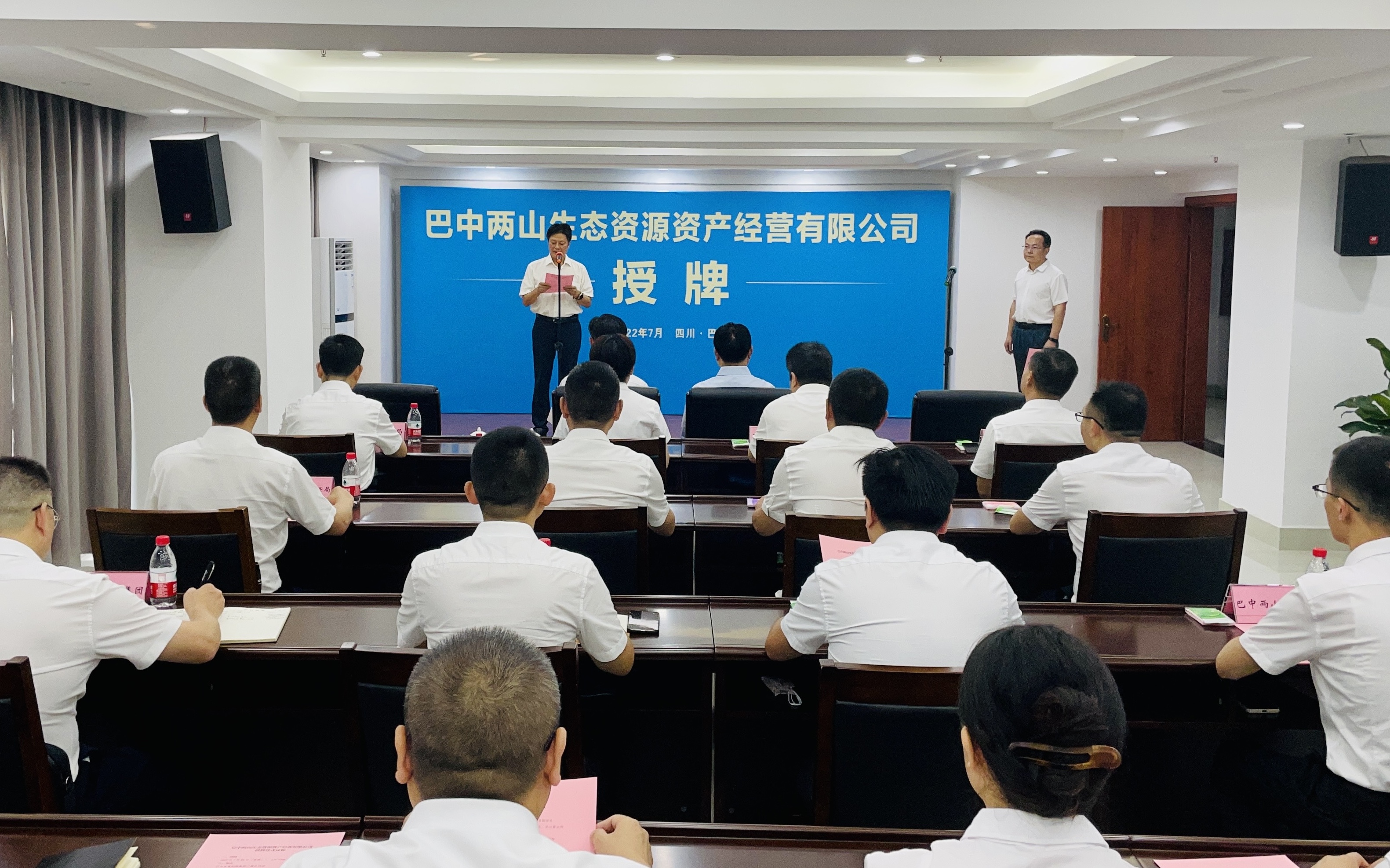 7月26日上午,巴中兩山生態(tài)資源資產(chǎn)經(jīng)營有限公司授牌儀式在巴中發(fā)展控股集團舉行。市委常委、常務(wù)副市長趙文嶠出席,并為公司授牌授印。