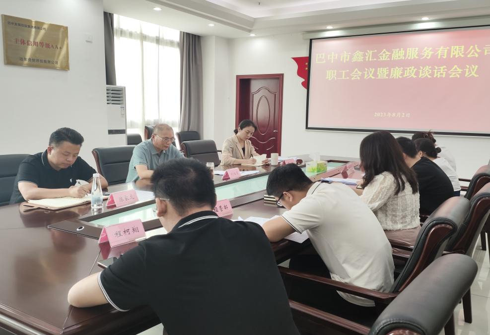 8月2日上午,巴中市鑫匯金融服務(wù)有限公司召開職工會議暨廉政談話會議,集團公司黨委委員、副總經(jīng)理劉仕勇主持會議并講話,公司全體職工參加。